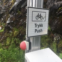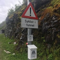 Senja ist - im Gegensatz zu den Lofoten - touristisch noch ein bissel nackerbatzi. Aber scheinbar ist es für RadfahrerInnen trotzdem (oder gerade deswegen?) höchst attraktiv. Die zahllosen Tunnel vor Ort sind aber, erstens, überwiegend einspurig und, zweitens, zappenduster. Dem wurde aber seitens der Kommunen vorgesorgt: Vor und nach jedem Tunnel gibt es für RadfahrerInnen die Möglichkeit eine Warnweste auszuborgen und einen Button zu betätigen, der ein Verkehrszeichen "Radfahrer im Tunnel" zum Blinken bringt. Nach überlebter Durchfahrt gibt man die Weste wieder in den Art Briefkasten - erledigt.