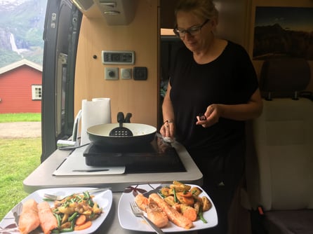In Odda hüpfen wir noch schnell unter die Dusche, essen Gabys köstliches Gulasch mit Polenta, und setzen anschließend unsere Reise fort, nächstes Ziel Vøringsfoss.