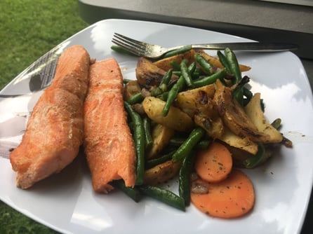 So geht´´´ es also essenstechnisch bei uns zu. Diesmal: Feinster Norwegischer Lachs an Kartoffelgemüse. Vielen Dank und Anerkennung an die 5-Hauben-Köchin Gaby!