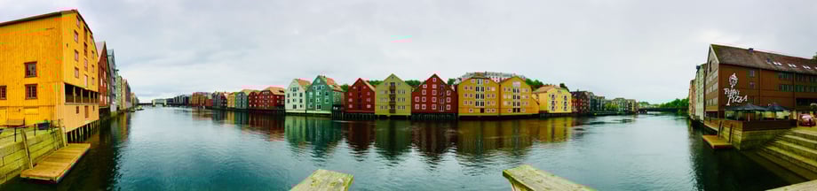 Wir haben das Gefühl, dass sich Trondheim seit unserem letzten Besuch deutlich vergrößert hat, möglicherweise liegt das aber auch an den neuen Straßen und Tunneln, die überall entstanden sind. Die Einfahrt in die Stadt erscheint uns jedenfalls sehr lange. Auf Grund des Feiertages bekommen wir direkt vor dem Rathaus einen Parkplatz und wir besichtigen den mittelalterlichten Nidarosdom. Über die Gamle Bybro - die alte Zugbrücke - gelangen wir in die Altstadt und zur bunten Häuserzeile entlang des Flusses Nidelva. Stark erinnert deren Bauweise auf hölzernen Pfahlen an Venedig. Zu guter Letzt gönnen wir uns eine Pizza bei „Peppe´s“. (Foto von Gaby!)